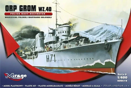 Zestaw zawiera plastikowy model okrętu do sklejania.