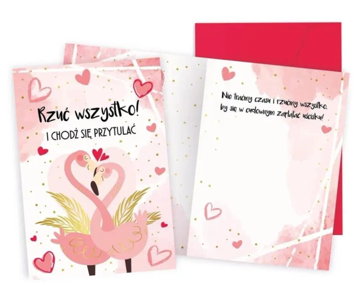 Kartka PR jest zdobiona przynajmniej dwoma rodzajami uszlachetnień - metaliczne lub perłowe folie, brokat, tłoczenie itp.- tyle piękna w takim drobiazgu! Każda kartka Passion Premium ma kolorowe wnętrze z tekstem wyjątkowych życzeń i grafiką, w komplecie jest także dopasowana kolorystycznie koperta. Cechy szczególne: wielkość: B6, 16.6 x 11.7 cm po złożeniu, koperta: dopasowana w zestawie, zdobienia: przynajmniej dwa rodzaje, często więcej - złota, srebrna lub perłowa folia, brokat, tłoczenia, wnętrze kartki: kolorowe, z życzeniami, okazja: Walentynki