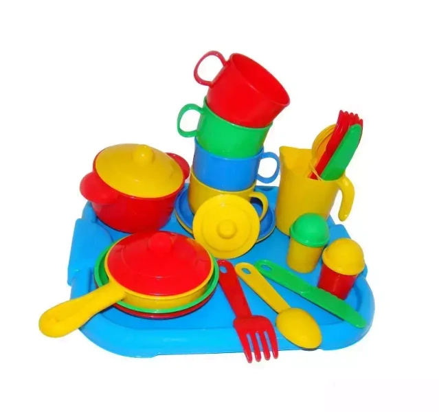 zestaw naczyń z tacą na 4 osoby