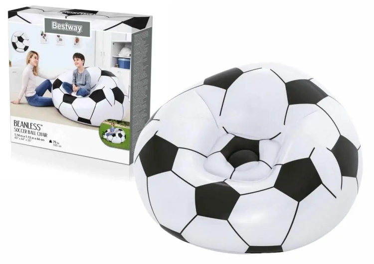 Jeżeli Twoje dziecko naszał uwielbia futbol, prezentujemy produkt wręcz stworzony dla niego! Dmuchany Fotel Piłka od Bestway o wymiarach 114 x 112 x 66 cm. Wyjątkowy wzór na pewno przyciągnie spojrzenie każdego młodego fana piłki nożnej. Od tej pory obserwowanie ulubionych spotkań stanie się jeszcze bardziej ekscytujące.