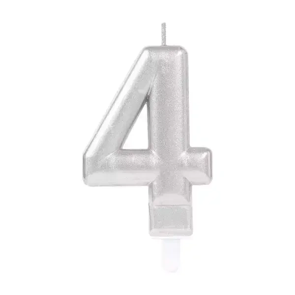 Świeczka cyferka 4 Sparkling Celebrations srebrna