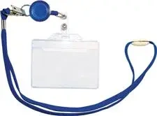 smycz z identyfikatorem z klipsem i eurozawieszką tasiemka tkana o szerokości 10 mm wyposażona w 2 metalowe klipsy umożliwiające odpięcie identyfikatora i przypięcie do paska lub kieszeni oraz w mechanizm sprężynowy z wysuwaną linką identyfikator wykonany z folii przezroczystej z możliwością włożenia etykiety od góry pakowany po 48 sztuk kolor niebieski