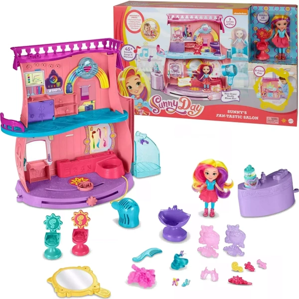 Ten wspaniały salon piękności obejmuje lalkę Sunny i 3 przestrzenie do zabawy oraz akcesoria do włosów i nie tylko.