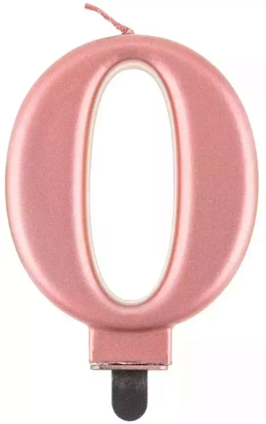 Świeczka urodzinowa. Cyfra 0, różowe złoto