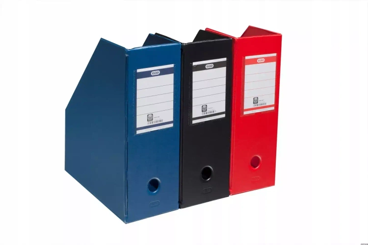 bull Dwustronna, wymienna etykieta opisowa w kolorze pojemnika br / bull Oklejone na zewnątrz i wewnątrz folią PVC br / bull Otw oacute r na grzbiecie ułatwiający zdejmowanie br / bull Składany br / bull Dostępny w wersji o szerokości 110 mm br / bull Pojemność 1100 kartek
