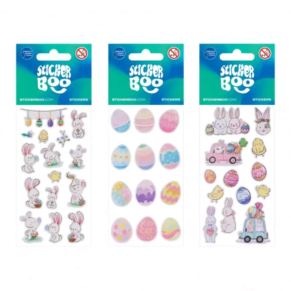 Naklejki STICKERBOO z grafiką Wielkanocną z pewnością przypadną do gustu dzieciakom, idealne do zdobienia rysunków, wszelkiego rodzaju prac plastycznych oraz kolekcjonowania.Dostępne w 3 odsłonach graficznych.Wysyłka losowo. Wymiary/waga: wymiary produktu (wys. x szer.) [cm]: 12x6, waga produktu w opakowaniu [kg]: 0,005 kg. Pakowane na blistrze w folię.