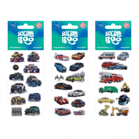 Naklejki STICKERBOO z grafiką z Autkami z pewnością przypadną do gustu dzieciakom, idealne do zdobienia rysunków, wszelkiego rodzaju prac plastycznych oraz kolekcjonowania. Dostępne w 3 odsłonach graficznych.Wysyłka losowo. Wymiary/waga: wymiary produktu (wys. x szer.) [cm]: 12x6, waga produktu w opakowaniu [kg]: 0,005 kg. Pakowane na blistrze w folię.