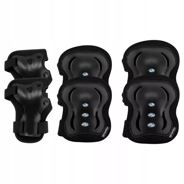 Kompletny zestaw ochraniaczy młodzieżowych na dłonie, łokcie i kolana. Posiada elastyczne zapinanie na rzep oraz oddychającą siatkę. Dzięki takiemu rozwiązaniu ochraniacze nie zsuwają się i zawsze pozostają na swoim miejscu. Ich anatomiczny kształt, zapewnia maksymalną swobodę ruchów. Wykonane są z lekkiego a jednocześnie wytrzymałego materiału. To niezbędny i podstawowy element wyposażenia dla każdego pasjonata rolek, wrotek, hulajnogi czy deskorolki. Dostępne w pięciu wersjach kolorystycznych.