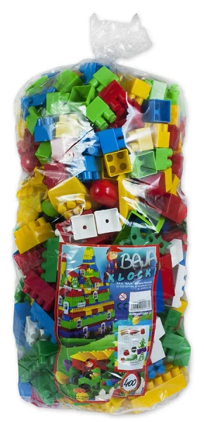 Plastikowe klocki ,z których można stworzyć różnorodne budowle.Opakowanie zawiera czterysta elementów.