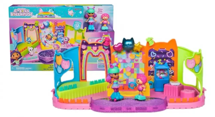 Wejdź do magicznego świata Gabby 39 s Dollhouse z zestawem do zabawy Gabby 39 s Party Room. Ten zestaw zawiera ekskluzywne 10-centymetrowe figurki Skater Gabby i Skater Marty, kotka na imprezie z działającymi wrotkami. Udekoruj Party Room akcesoriami i meblami do domku dla lalek, a następnie ciesz się zabawą sensoryczną z fidget toys na ścianie Party Room. Dla jeszcze większej zabawy, dołącz Party Room do Gabby 39 s Dollhouse, aby podnieść domek do wysokości czterech pięter i dostać się do Party Room za pomocą domkowego quot kociego-windatora quot . Zabawki Gabby 39 s Dollhouse dla dziewczynek i chłopc oacute w są doskonałymi prezentami dla dzieci, kt oacute re są fanami popularnego serialu Netflix i lubią budować światy domk oacute w dla lalek w ramach udawanej zabawy. Uczyń ich wejście do zabawy w domek dla lalek niezapomnianym dzięki światu uroczych figur, akcesori oacute w i mebli do domku dla lalek do zbierania i konfiguracji. Buduj sw oacute j świat dzięki niezbędnym elementom zestawu domku, takim jak kuchnia do zabawy lub pok oacute j muzyczny, oraz mn oacute stwu kolekcjonerskich przedmiot oacute w, takich jak niesamowita zabawka statek wycieczkowy, basen w stylu syrenki i zupełnie nowy zestaw do zabawy Party Room mdash poddasze domku z wewnętrznym skateparkiem i super uroczymi balkonami z mini zabawkami sensorycznymi, kt oacute re zapewniają satysfakcjonującą zabawę sensoryczną i wsp oacute łpracują bezproblemowo z obiema wersjami domku dla lalek.