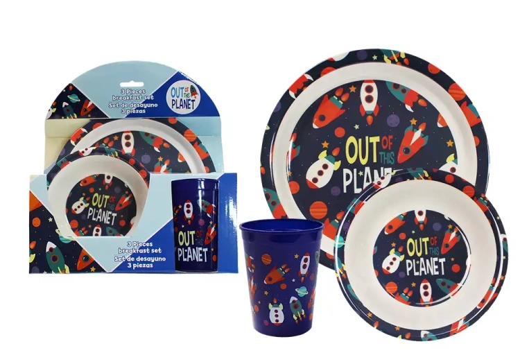 Zestaw naczyń: kubek, talerzyk, miseczka, 29x11x7,5cm z melaminy Out Planet KL10261 Kids Euroswan