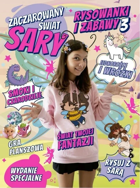 Książka aktywnościowa, pełna kolorowanek, labiryntów, gier i zabaw związanych ze światem fantazji. Można w niej narysować i opisać własnego jednorożca, wróżkę i smoka. Stworzyć mapę świata magicznych istot i miejsc. Książka zawiera także grę planszową, uczącą współpracy, w której można zdobyć 6 magicznych kart mocy i pomóc królowej wróżek. W książce znajdują się też strony z rysunkami i tutorialem Sary, prowadzącej kanał Zaczarowany Świat Sary. Do książki dołączone są trzy dodatki: 2 Onepacki MojiPops Rainbow i 1 Onepack SuperThings Neon Power.
