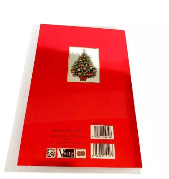 Karnet złoty Boże Narodzenie (choinka,Mikołaj w tle ) p5 Verte cena za 1szt