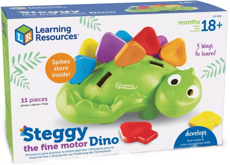 Zabawa polega na wkładaniu, wyjmowaniu i ukrywaniu wewnątrz grzbietu, kolców dinozaura, nazywaniu ich kolorów i numerów, oraz liczeniu od 1 do 10. Sorter Dino pomaga małym uczniom rozwijać umiejętności motoryczne. Umieszczenie kolorowych, ponumerowanych kolców w plecach dinozaura pomaga budować siłę dłoni, doskonalić chwyt cęgowy i poprawia koordynację ręka-oko. Ponadto małe dzieci uczą się również kolorów i liczb. Kolce można przechowywać w środku, gdy nie są używane, w celu szybkiego i łatwego sprzątania.