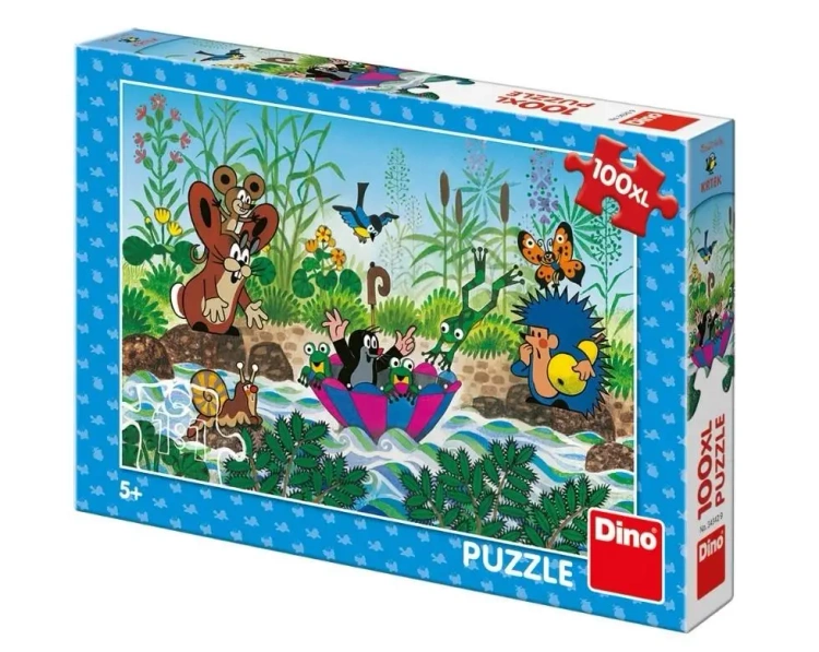 Puzzle XL z Krecikiem 100 elementów Tworzą duży obrazek z Krecikiem i przyjaciółmi nad wodą Dla dzieci 5+ Wysoka jakość wykonania Wycinane laserowo Obrazek o wymiarach 47 x 33 cm Wymiary opakowania 27,5 x 19 x 4,5 cm Wyprodukowano w Czechach Certyfikat bezpieczeństwa CE
