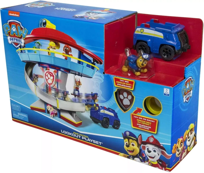 Obserwuj okolice z Bazy Psiego Patrolu! Zobacz jak Chase wjeżdża windą na najwyższe piętro wieży i sprawdza okolicę w poszukiwaniu zagrożenia za pomocą swojego peryskopu. Teraz, dzięki temu zestawowi, możesz wiernie odtwarzać ulubione sceny z serialu! Dostrzegłeś zagrożenie? Naciśnij odznakę Psiego Patrolu, aby ogłosić alarm i pospieszyć na pomoc! W jednej chwili Chase rusza do swojego wozu, używając zamontowanej rury. Zestaw składa się z bazy obserwacyjnej wyposażonej w efekty dźwiękowe i świetlne, windy, specjalnej zjeżdżalni oraz figurki Chase'a. Obserwuj Zatokę Przygód przy pomocy prawdziwego peryskopu, który obraca się o pełne 360 stopni!