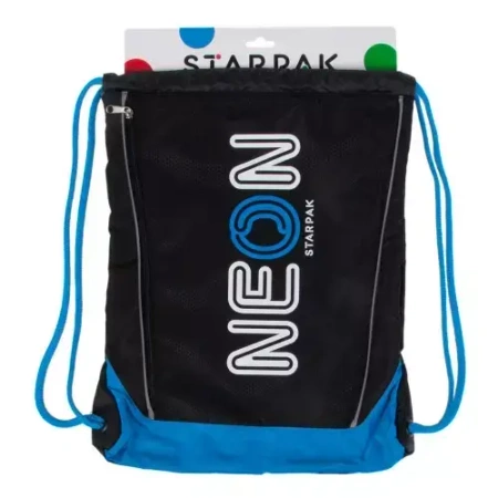 Worek w czarnym kolorze z niebieskimi wykończeniami. Wykonany z trwałego materiału. Worek jest wyrobem tekstylnym. Przeznaczony dla dzieci w wieku 3+. Wymiary produktu w cm: 46x35,5.