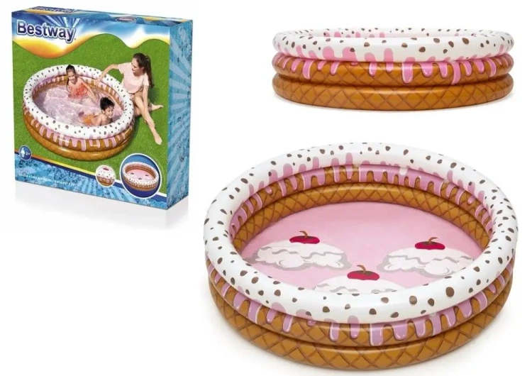 Nadmuchiwany okrągły basen ogrodowy marki Bestway, zbudowany jest z trzech połączonych ze sobą komór powietrznych, z których każda ma zawór bezpieczeństwa. Grube i miękkie ścianki basenu wykonane są z wytrzymałego winylu z graficznym motywem lodów owocowych. Kolorowy basen jest idealnym rozwiązaniem dla najmłodszych nie tylko do ogrodu, ale także na taras, czy nawet balkon.