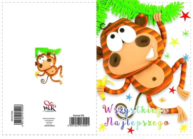 Karnet okolicznościowy z tekstem o wymiarach 12x17 cm.