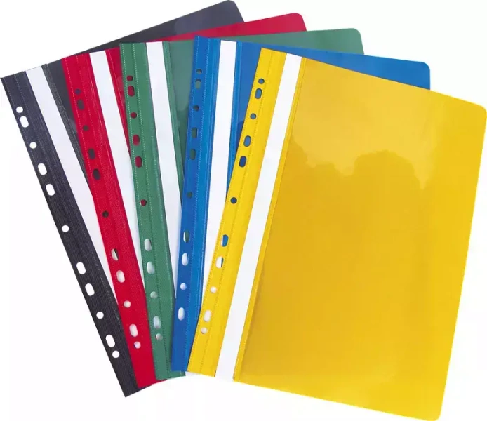 Skoroszyt formatu A4, służący do przechowywania i prezentacji dokumentów. Wykonany z mocnego PCV. Przednia okładka przezroczysta, twarda, tylna - kolorowa. Zaokrąglone rogi. Listwa na opis. Możliwość wpinania do segregatorów wszystkich typów.
