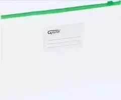 Materiał polipropylen. Zewnętrzna kieszeń na wizytówkę. Zamek strunowy w kolorze zielonym. Format A5.