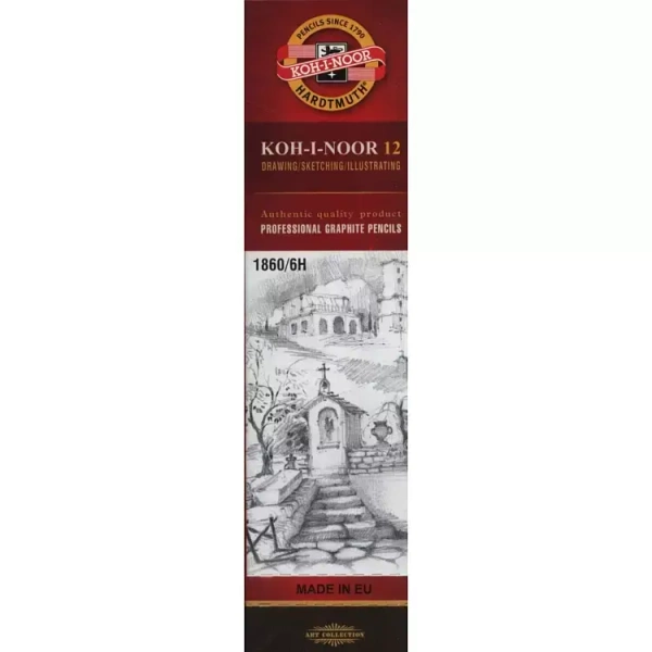 Ołówki z serii 1860 Koh-I-Noor, twardość 6H. Oprawki klejone na całej długości z drewna oprawnego zapewniają odpowiednią ochronę grafitu i łatwość temperowania. Przeznaczone głównie do celów biurowych i szkolnych oraz nauki rysunku.