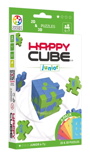 Piankowa zabawa, którą pokocha Twoje dziecko. Prezentowany produkt „Happy Cube Junior” to zestaw 6 kolorowych kostek z trwałej pianki, które możesz dowolnie ze sobą łączyć. Zwyczajnie wypchnij elementy układanki z ramki i... buduj! Posługując się wyobraźnią przestrzenną i logiką spróbuj stworzyć kształt składający się z wszystkich elementów. Możesz też układać pojedyncze kostki. Jedynym ograniczeniem jest Twoja wyobraźnia. „Junior” to zestaw, który doskonale sprawdzi się u dzieci w wieku 3 do 7 lat.
