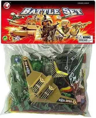 Zestaw 2 drużyn żołnierzyków z pojazdami i samolotami oraz planszą do bitwy.
