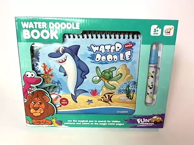 Książeczka ze zwierzętami podwodnymi do rysowania za pomocą wody. Pisak wodny dołączony do zestawu.