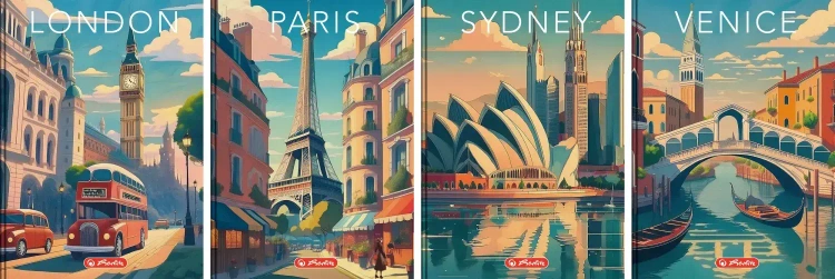 ul li Twarde, kartonowe, laminowane okładki pokryte matową folią /li li Ilustracje przedstawiające znane miasta w stylu retro /li li Okładki utrzymane w stonowanej kolorystyce, z dbałością o szczeg oacute ły /li li Szyty i klejony grzbiet /li li Format A6 /li li 96 kartek w kratkę /li li Papier o gramaturze 70 g/m2 /li li Okładka o grubości 1,7 mm /li li 4 okładki do wyboru /li li Oznaczone certyfikatem PEFC /li /ul