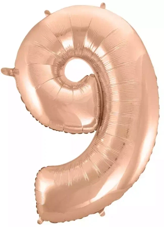 BALON FOLIOWY CYFRA 9, RÓŻOWO-ZŁOTA