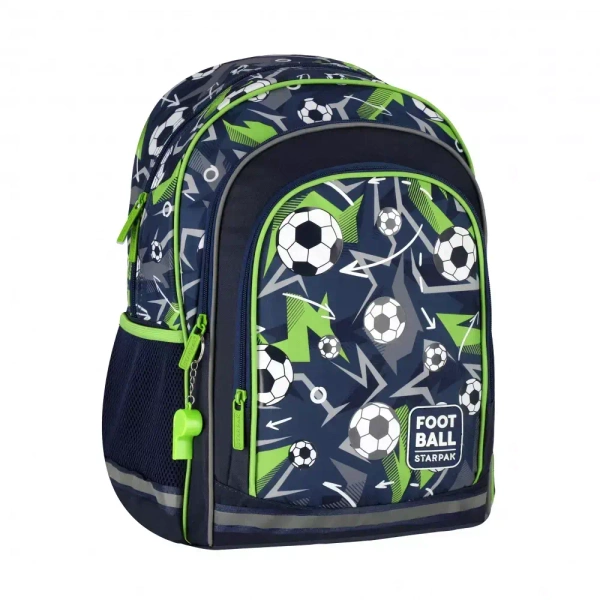 Zalety plecak składa się z 1 dużej komory i 2 obszernych przednich kieszeni, 2 boczne wzmocnione kieszenie siatkowe na butelkę z napojem, wytrzymałe zamki błyskawiczne, plastikowe stopki na spodzie plecaka ochrona przed wilgocią i brudem , ergonomiczne plecy i szelki, plecy z systemem wentylacji dla większego komfortu, grube, miękkie szelki chronią ramiona, regulowane szelki pozwalają dopasować plecak do wzrostu i budowy ciała, uchwyt wzmocniony gumową opaską pozwalające zawiesić plecak na wieszaku lub wygodnie nosić go w ręce, odblaskowe paski umieszczone na przedniej kieszeni, na obu bocznych kieszeniach i na szelkach zwiększające widoczność plecaka w nocy bezpieczeństwo dziecka . Plecak szkolny składający się z dw oacute ch kom oacute r zapinanych na zamek, co pozwoli na lepsze zorganizowanie wewnętrznej przestrzeni. Na zewnątrz znajduje się bardzo obszerna przednia, zapinana kieszeń, po bokach dwie kieszenie ze ściągaczem idealne na umieszczenie w nich bidonu z napojem. Plecy i szelki wyściełane gąbką zapewniają komfort użytkowania i r oacute wnomierne rozłożenie obciążenia na plecach dziecka. Przy zamku zawieszony gwizdek. Wykonany z trwałego materiału wykończonego elementami odblaskowymi dla większego bezpieczeństwa. Zapoznaj się r oacute wnież z innymi produktami STARPAK dedykowanymi młodzieży. Plecak w niebiesko-biało-zielonych kolorach. Plecak jest wyrobem tekstylnym. Przeznaczony dla dzieci w wieku 3 . Wymiary produktu wys. x szer. x gł. cm 40x29x20, pojemność plecaka 23 l, waga produktu kg 0,68 kg. Plecak pakowany w folię.