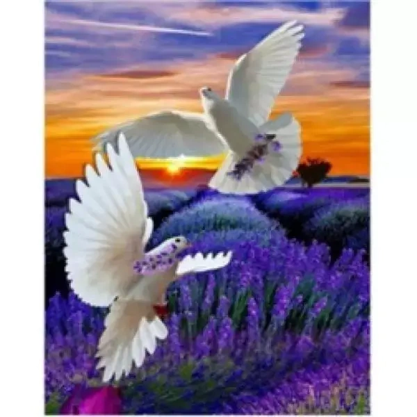 Diamentowa mozaika Golębie na dlawendową łąką 30x40cm 7012 - Norimpex