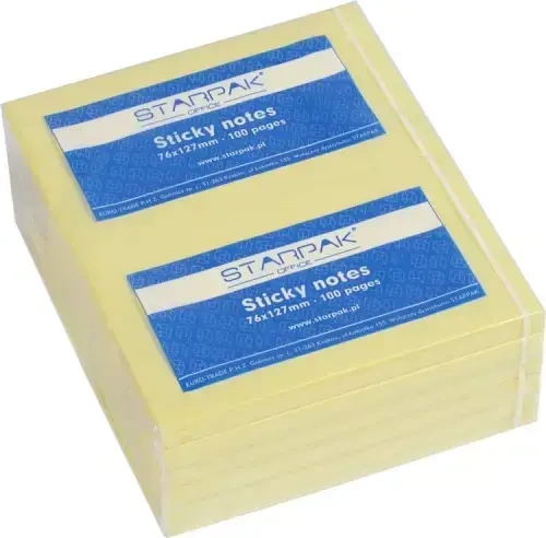 Notes karteczek samoprzylepnych. Trwały klej sprawia, że karteczki mogą wisieć na swoim miejscu przez wiele miesięcy. Klej nie pozostawia śladów. Odpowiedni kolor karteczek to kompromis między jaskrawością a komfortem dla oka. Dostępne bloki żółte lub wielokolorowe.