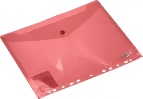 teczka kopertowa na zatrzask z europerforacją umożliwiającą wpięcie teczki do segregatora format A4 pozioma wykonana z polipropylenowej folii o transparentnej, lekko matowej, prążkowanej fakturze kolor czerwony