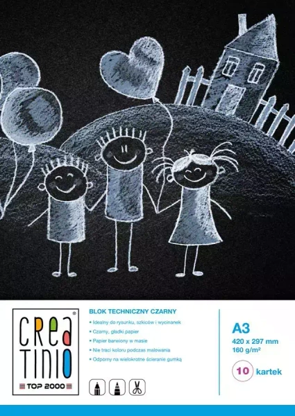 Blok techniczny Creatinio, Czarny A3 10k 160g