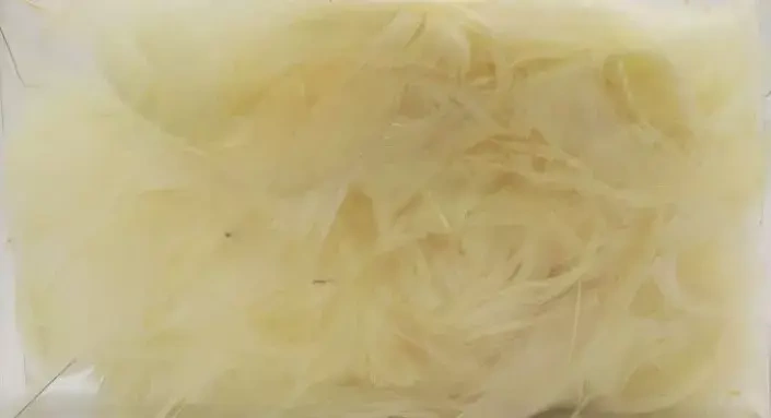 Naturalne piórka barwione na kremowy kolor. Mix wielkości – od kilku do ok. 10 cm długości.