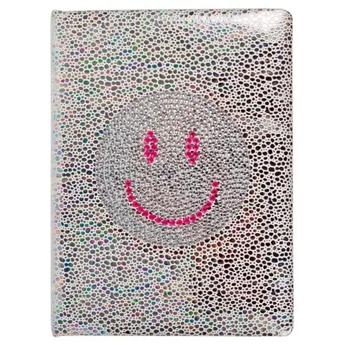 Notes z błyszczącą okładką wyklejoną kryształkami.