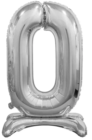 BALON FOLIOWY STOJĄCY CYFRA 0, SREBRNA