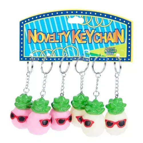 Brelok w kształcie ananasa w okularach przeciwsłonecznych, który świeci na czerwono-niebiesko to idealny gadżet do kluczy, plecaka lub torebki.
