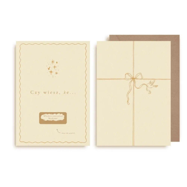Kartka dwustronnie zadrukowana, w komplecie z kopertą w stylu kraft.