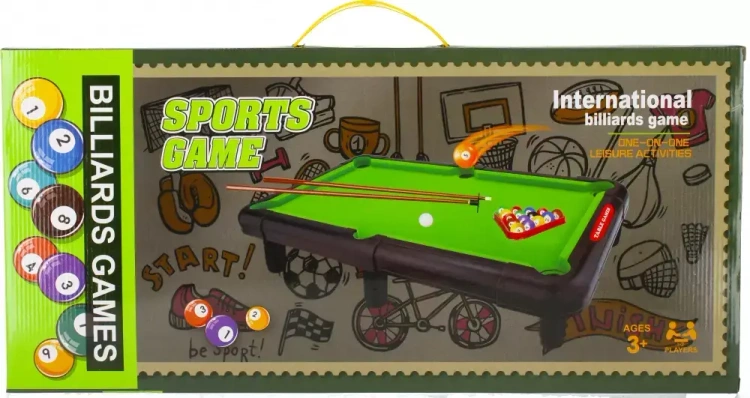 Rozwija kreatywność dziecka, pozwala na spędzenie wolnego czasu. Praktyczne wydanie stołu bilardowego idealnie nadającego się dla mniejszych graczy. Bilard staje się sportem coraz bardziej popularny jako sposób na spędzenie wolnego czasu. Prezentowany stół jest idealnie zeskalowany z profesjonalnych stołów pełnowymiarowych. Zawartość zestawu: stół, 11 bil, 2 x kijki, trójkąt, 6 nóżek do stołu. Całość wykonana z plastiku i zamszu.