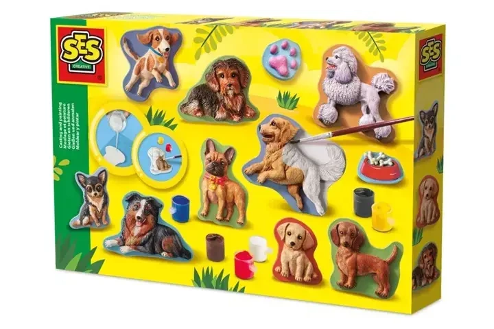 Zestaw zawiera formę do odlewania 9 najpopularniejszych psów i 2 akcesoria z gipsu.
