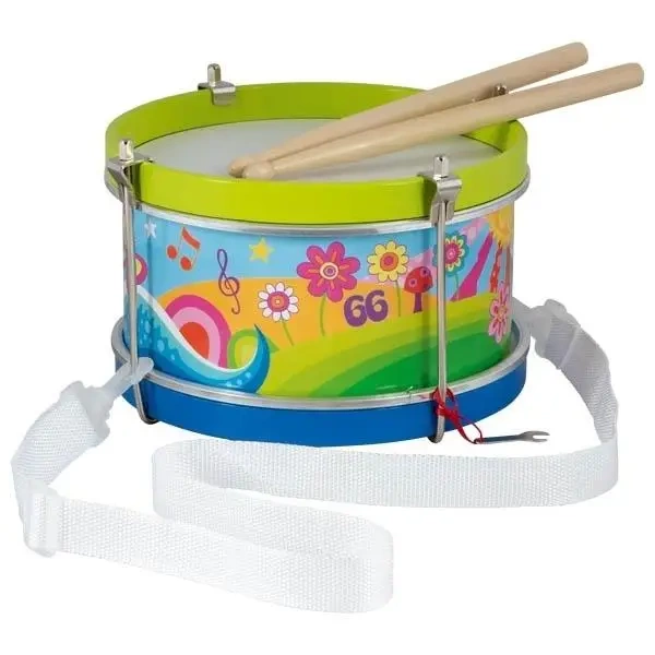 Drewniany bębenek ozdobiony motywem kwiecistej łąki. Idealny do nauki podstaw rytmiki i ćwiczeń muzycznych, rozwijając słuch oraz wrażliwość artystyczną. Zachęca dzieci do tworzenia własnych rytmów.