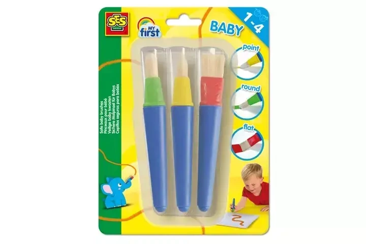 Przedstawiamy My First Safe Baby Brushes (3 sztuki), idealne dla małych artystów! Ten zestaw zawiera trzy różne końcówki pędzli: spiczasty, okrągły i płaski. Te pędzle są wyjątkowo bezpieczne, nie mają małych części i mają ergonomiczne uchwyty do wygodnego malowania.