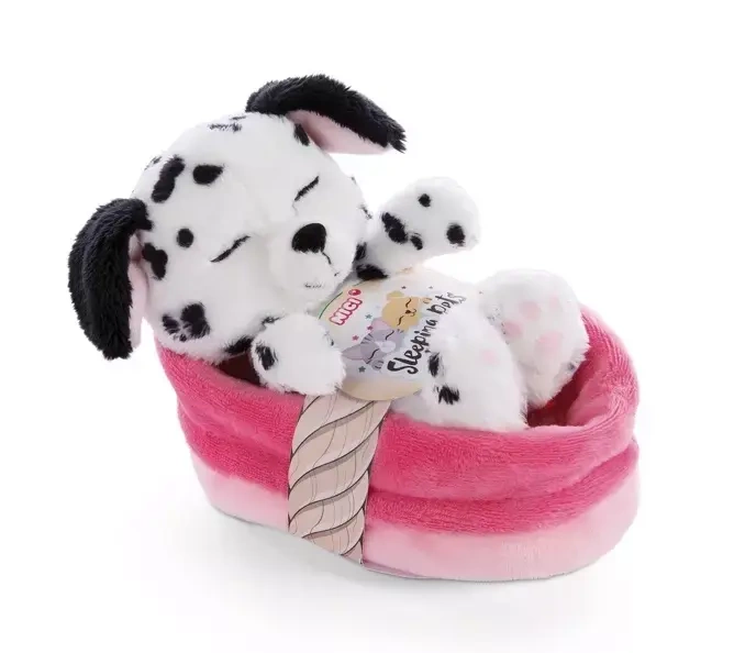 NICI 47891 Maskotka śpiący szczeniak Dalmatyńczyk 12cm w różowym koszyku