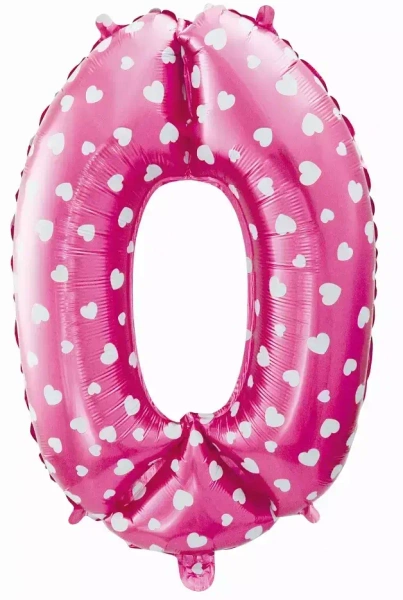 Balon foliowy. Cyfra 0, różowa w serca (61 cm)