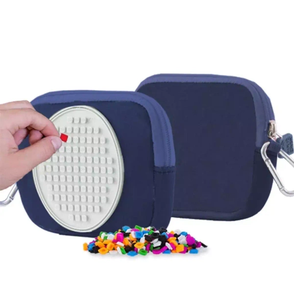 Saszetka na Suwak, Kosmetyczka, PIXIE CREW, Niebieska, Panel Świecący w Ciemności Praktyczna kosmetyczka na suwak PIXIE CREW niebieska, z kreatywnym panelem świecącym w ciemności, na którym można tworzyć oryginalne i spersonalizowane grafiki, za pomocą małych silikonowych pikseli. Wykonana z wytrzymałego neoprenu. Zapinana jest na suwak. Wewnątrz znajduje się wystarczająco dużo miejsca na różne małe rzeczy. Sprzedawana jest z dodatkowym darmowym zestawem około 69 pikseli. Kreatywny panel wykonany jest z najwyższej jakości silikonu. Wyposażony jest w niewielkie występy w kształcie litery "T", do których możemy mocować małe płytki - piksele oraz multipixele z obrazkami, tworząc własne grafiki lub kopiować gotowe szablony. Szczegółowe informacje o produkcie: