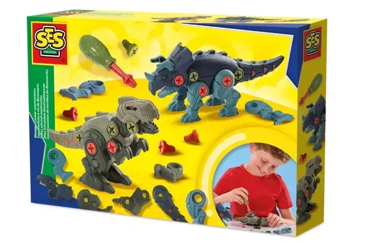 Zbuduj własnego T-rexa i złóż Triceratopsa za pomocą śrubokręta, różnych części dinozaurów i plastikowych śrub.