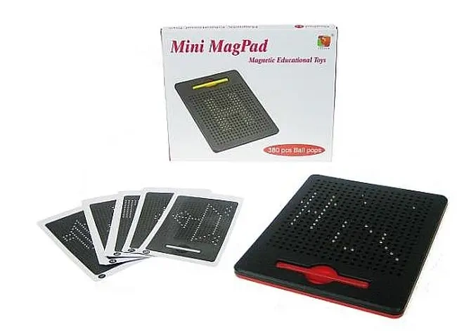 zabawa polega na rysowaniu załączonym rysikiem z magnesem / przy dotknięciu rysika do talicy wysuwają się kuleczki - powstają napisy lub obrazki /